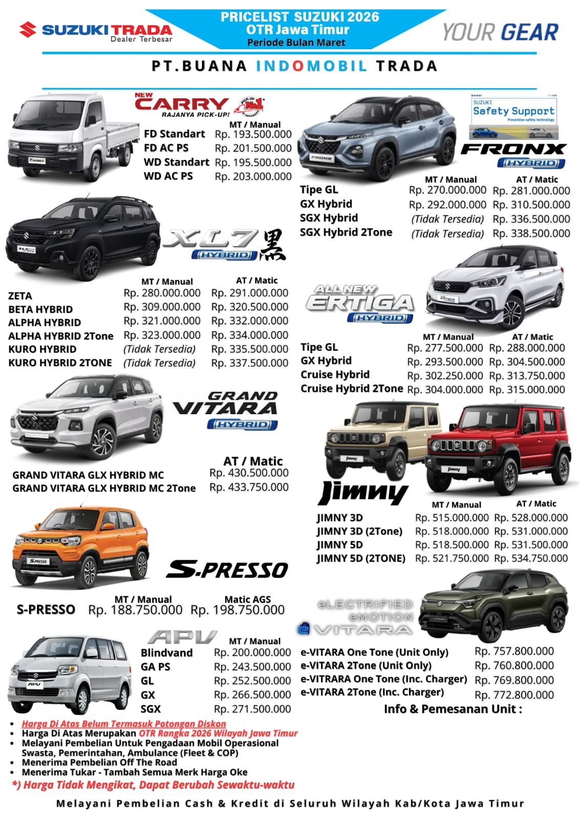 Dengan kombinasi desain fungsional, mesin efisien, dan interior luas, Suzuki APV menjadi pilihan tepat. Mobil ini cocok untuk siapa saja yang membutuhkan kendaraan praktis dan serbaguna.